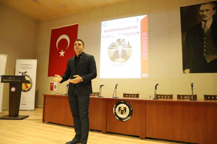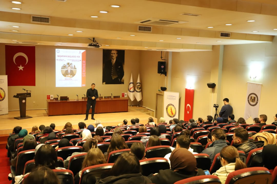 Seminere konuşmacı olarak katılan Akın Ertürk Eğitim Kurumları Kurucusu ve Yöneticisi Akın Ertürk, hedef belirleme, zaman yönetimi, disiplin, kişisel gelişim ve motivasyon üzerine bilgiler verdi ve başarıya giden yolda dikkat edilmesi gereken aşamaları aktardı.
